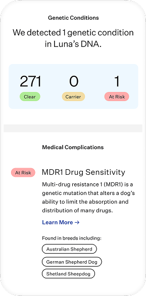 Wisdom Panel has a database of of 365+ breeds, types, and variants, which in combination with our pioneering breed detection system allows us to identify your dog’s full breed mix, leaving no ambiguity and helping you provide a better training program, understand behaviour, and create an effective daily and long-term care and wellness plan for your dog. Additionally, this kit scans for medication sensitivities using an MDR1 test, helping you know if your pup is likely to have an adverse reaction to commonly used medications. Having tested over 5 million pets, Wisdom Panel have matched genetic relatives to more than 99.9% of the dogs we've tested.